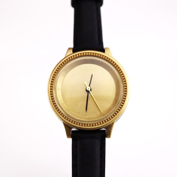 文字盤のまわりに、ぐるりとミルグレイン(小さな粒が連続している装飾)を施した腕時計です。