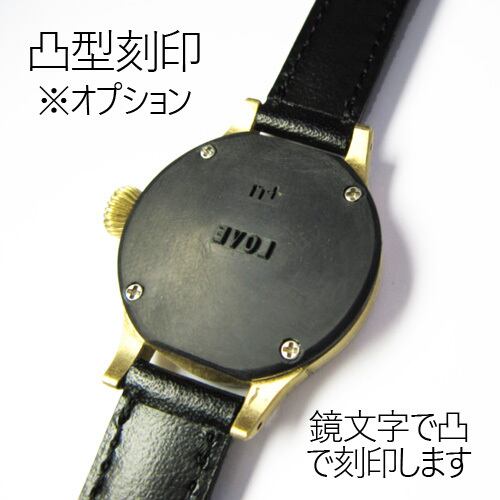 正面から見た時にリューズが見えないようになっており、ベゼルと裏蓋、針は手作りになります